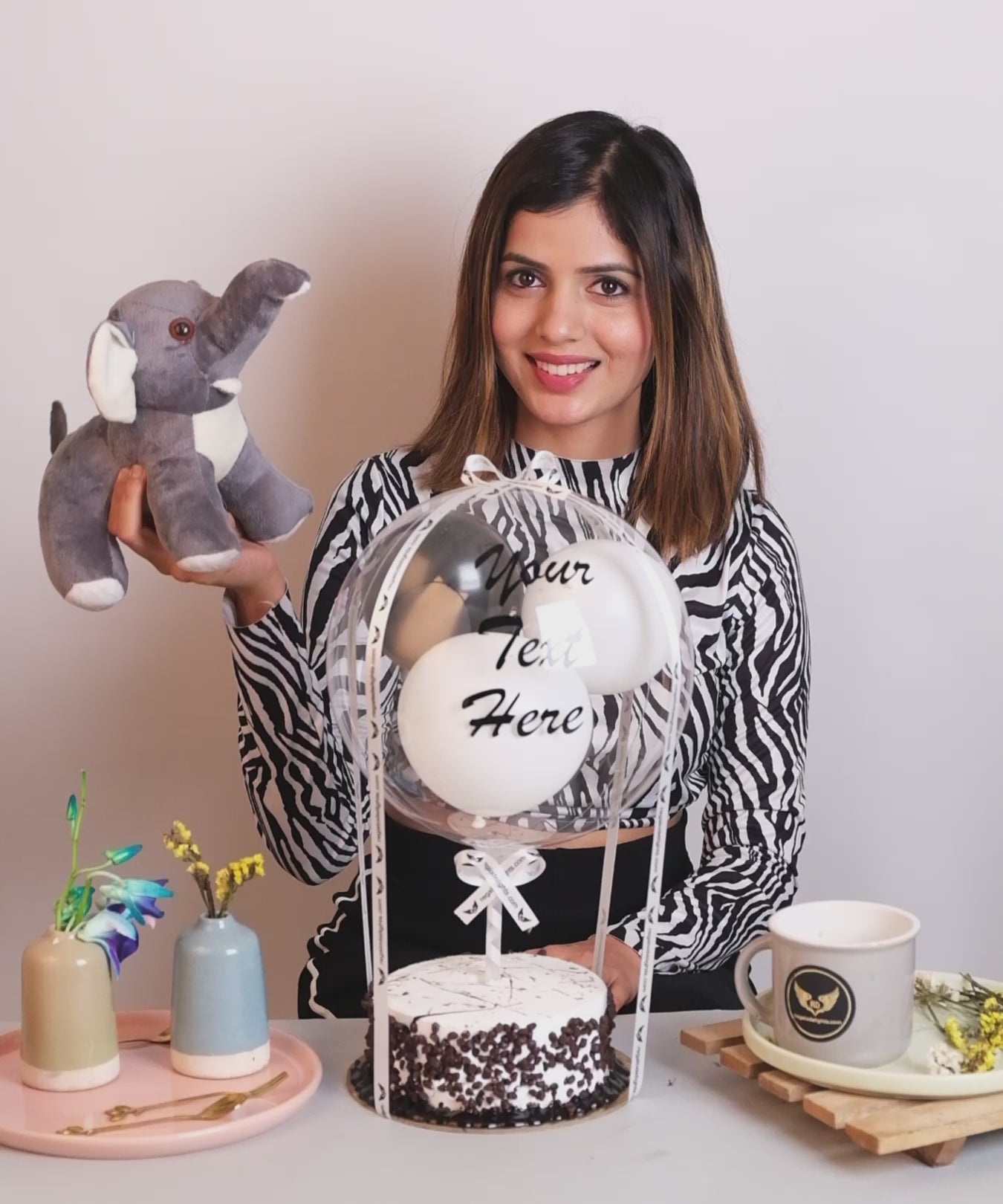 Regalo Delights' Marble Regalo Cake is a work of art, and the Elephant figurine is an adorable touch. A match made in sweet harmony