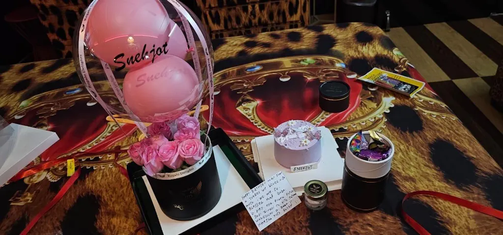 Celebrate in style with this personalized hot air balloon–themed balloon arrangement, featuring pink pastel balloons, pink rose, photos, a cake and soft LED lighting. Perfect as a gift or party décor, this elegant piece comes with a customizable message on balloon and a premium decorative base.
