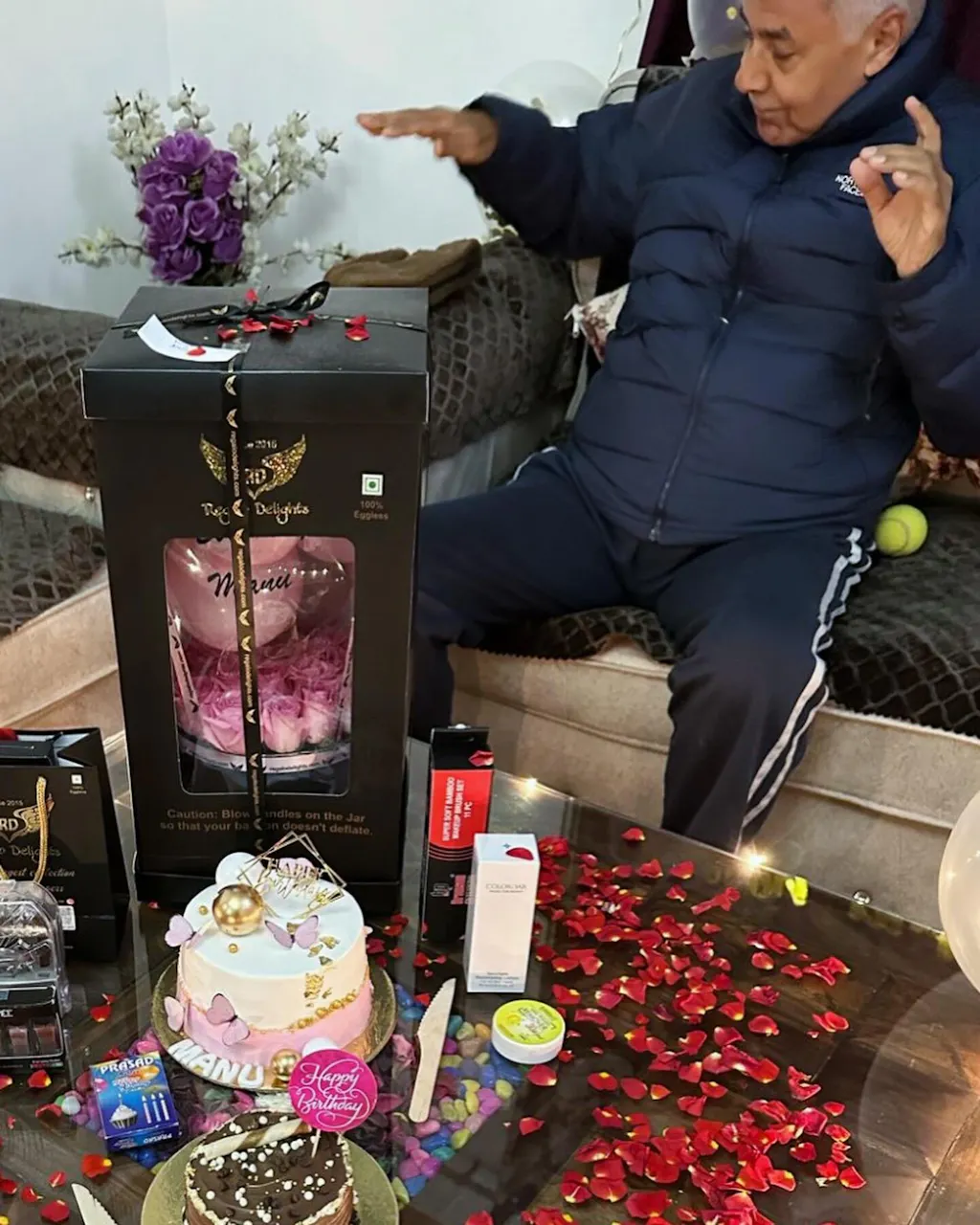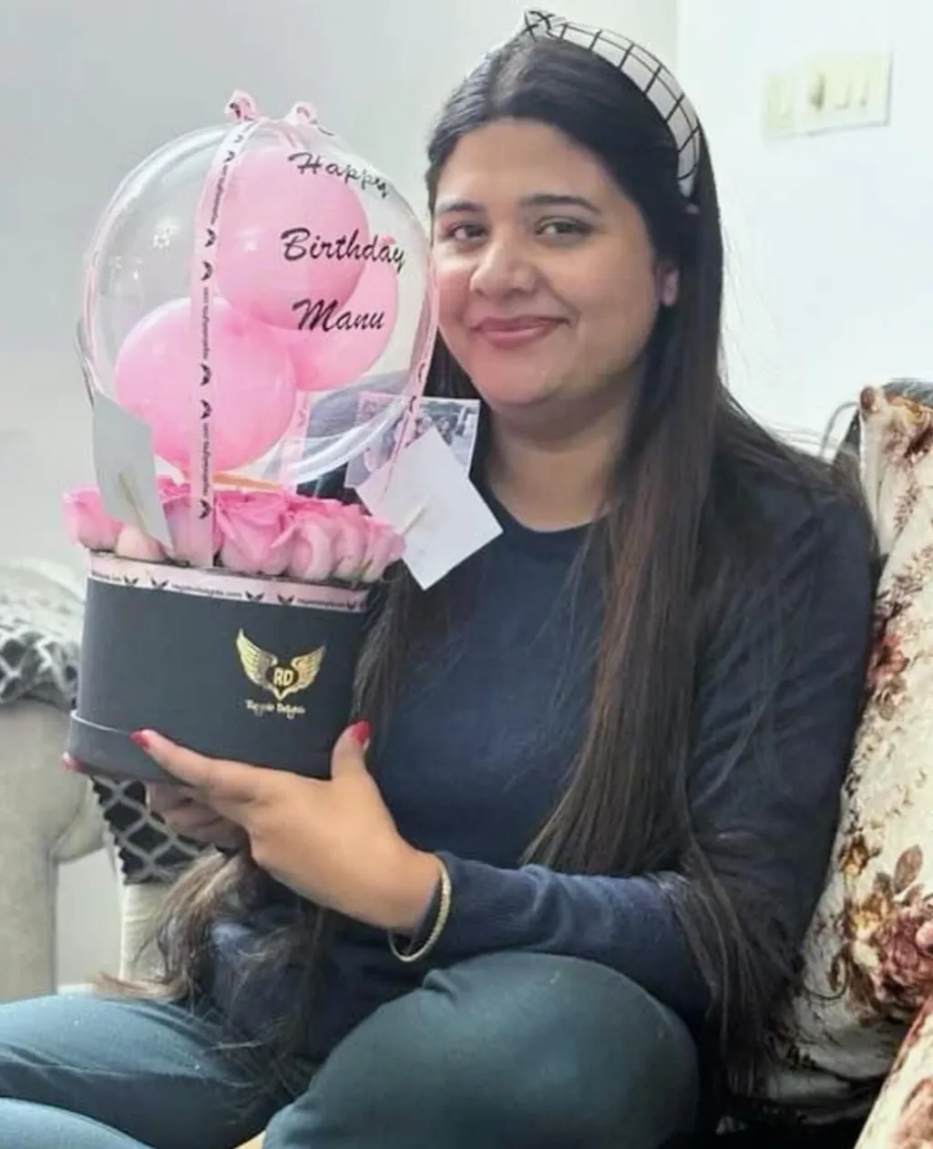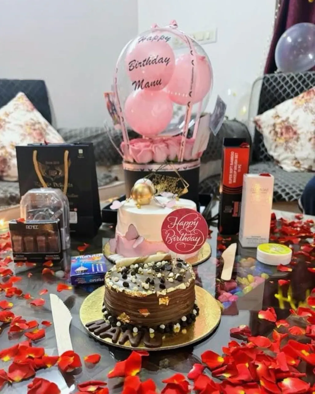 Celebrate in style with this personalized hot air balloon–themed balloon arrangement, featuring pink pastel balloons, pink roses and soft LED lighting. Perfect as a gift or party décor, this elegant piece comes with a customizable message on balloon and a premium decorative base.