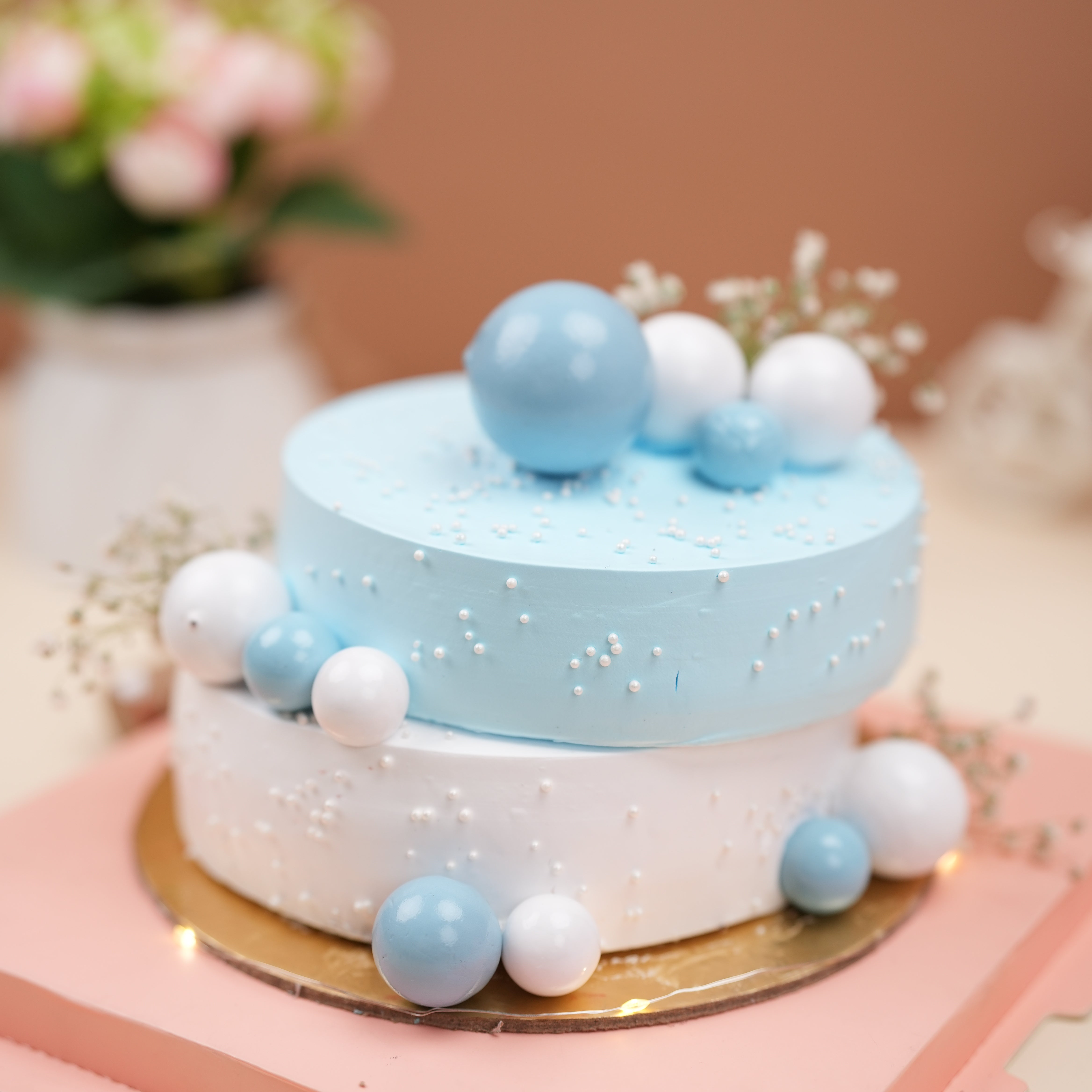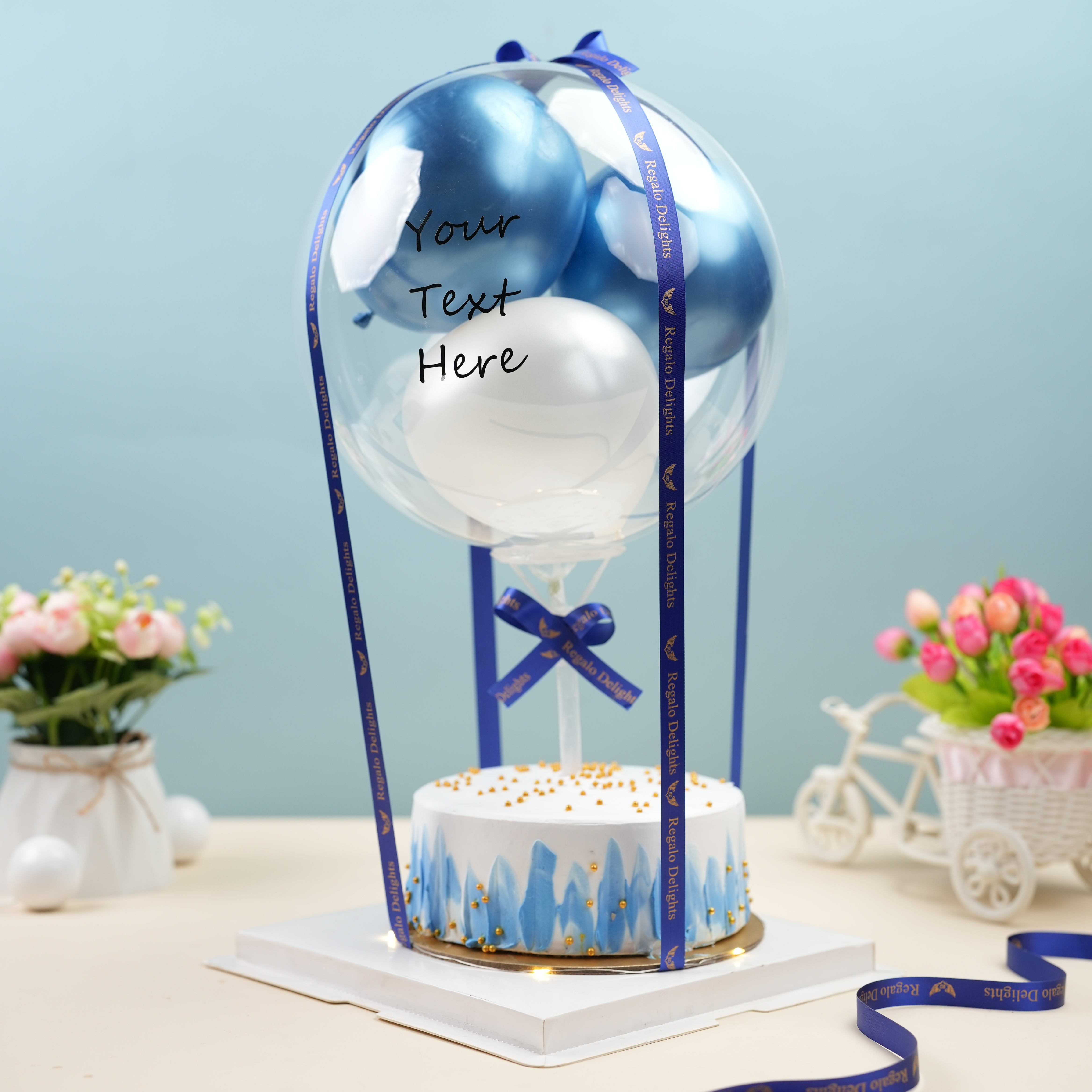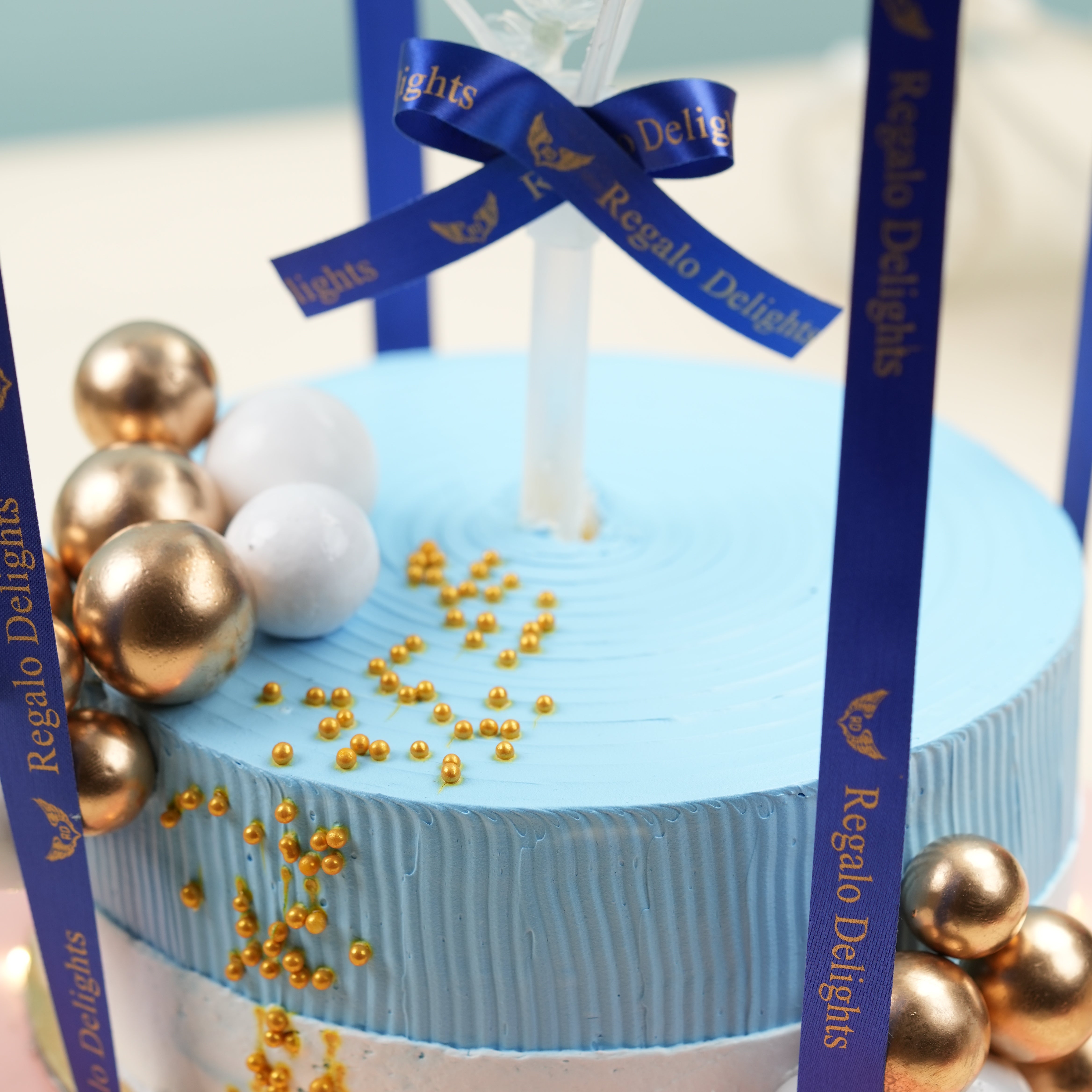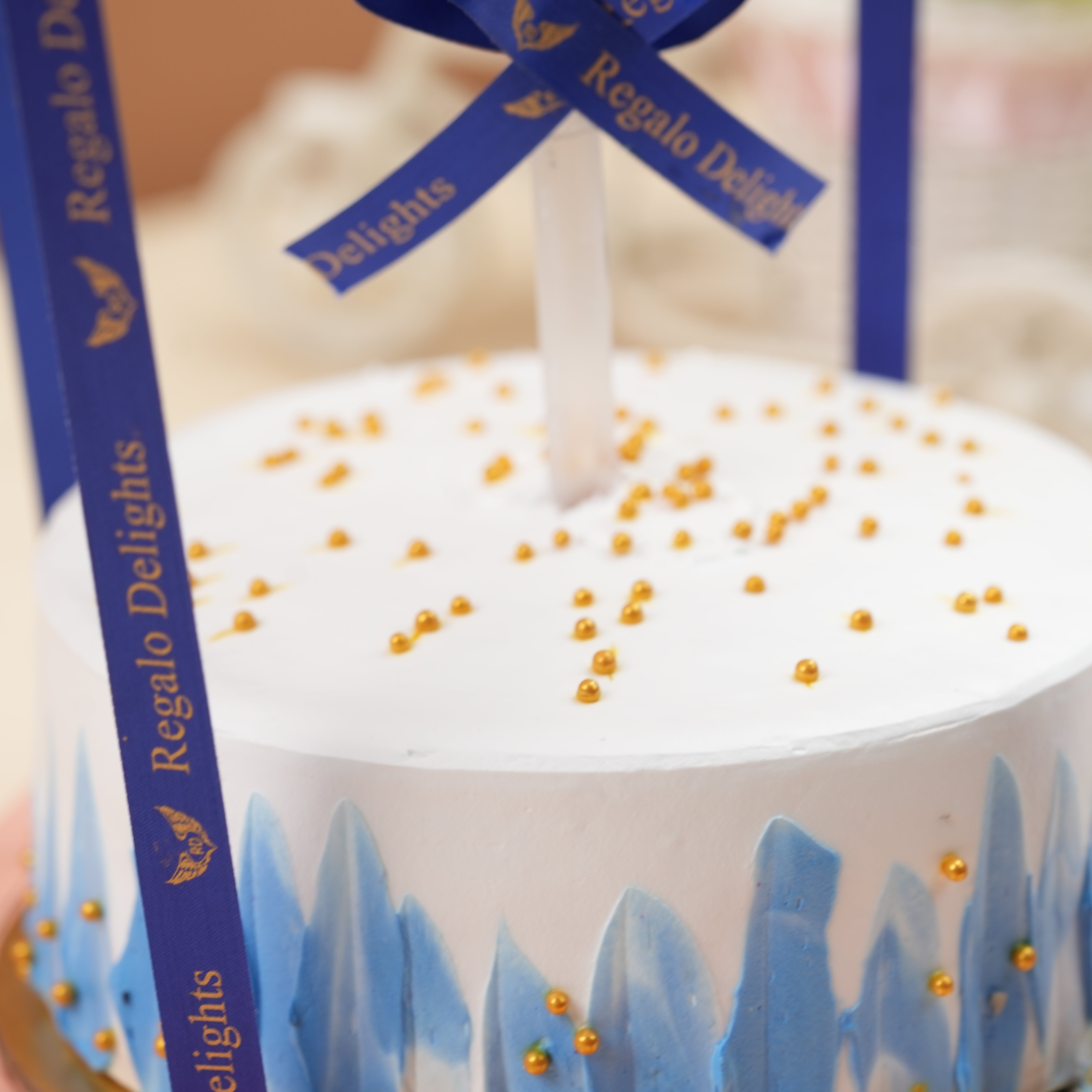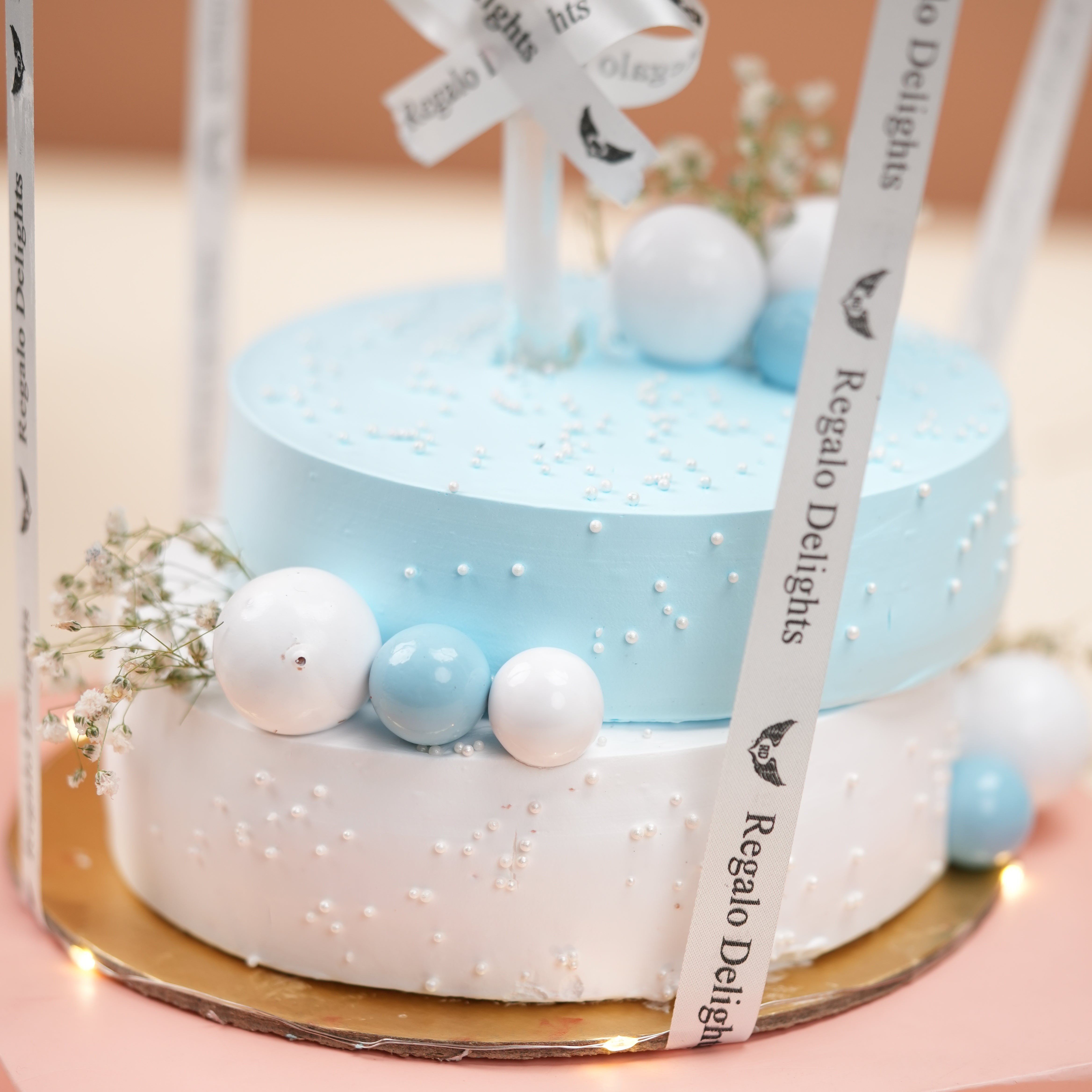 Blue White 2 Layered Regalo Cake